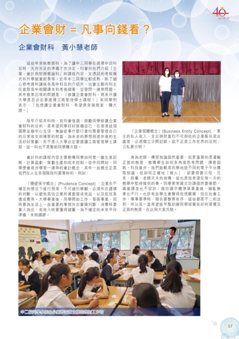 會計科的課程內容主要教導同學如何替一盤生意記 身為老師,傳授知識固然重要,但更重要的是灌輸