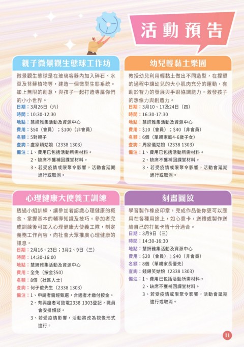 地點:慧妍雅集活動及資源中心 地點:慧妍雅集活動及資源中心