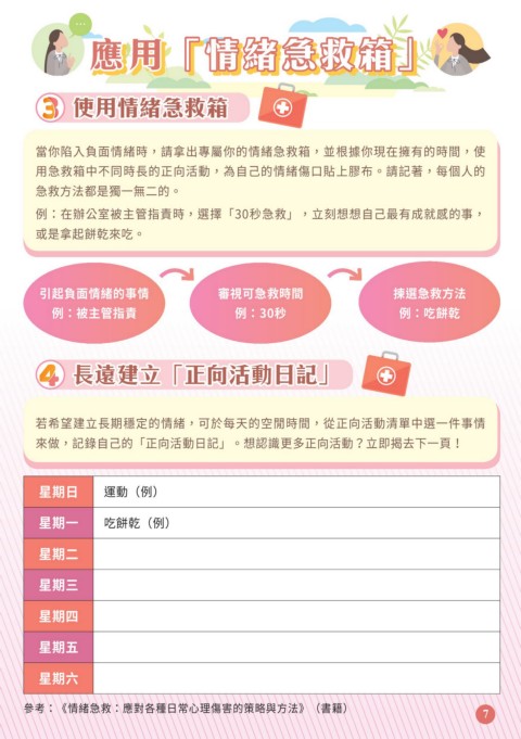 用急救箱中不同時長的正向活動,為自己的情緒傷口貼上膠布。請記著,每個人的