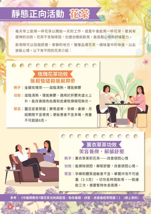 參考:《中醫師教你7類花茶功效與配搭,助你養顏、紓壓、改善痛經等問題!》(網上資料)