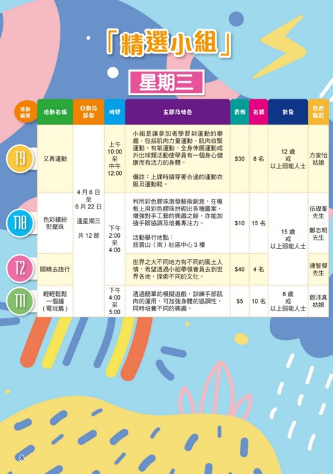 T10 色彩繽紛 逢星期三 下午 增強對手工藝的興趣之餘,亦能加 $10 15 名 先生