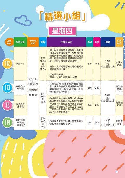 中午 備註:上課時請穿著合適的運動衣 以上弱能人士 姑娘