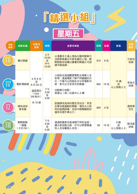 活動 活動名稱 日期及 時間 主題及特色 費用 名額 對象 負責