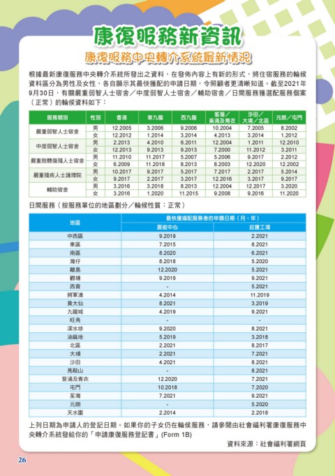 根據最新康復服務中央轉介系統所發出之資料,在發佈內容上有新的形式,將住宿服務的輪候