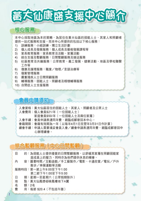 黃 大 仙 康 盛 支 援 中 心 簡 介