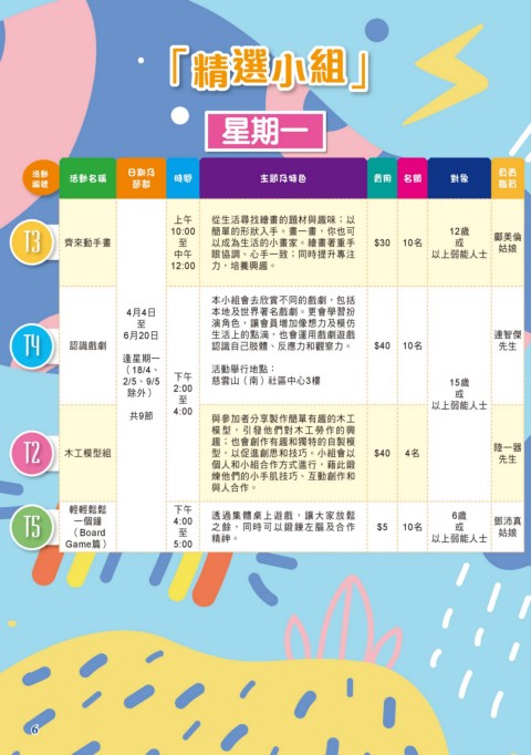 T5 輕輕鬆鬆 下午 透過集體桌上遊戲,讓大家放鬆 $5 10名 6歲 鄧沛真