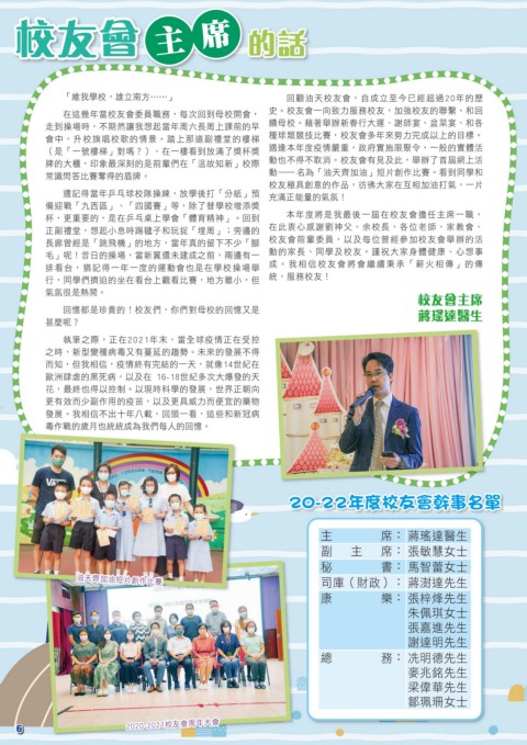 杯,更重要的,是在乒乓桌上學會「體育精神」。回到 本年度將是我最後一屆在校友會擔任主席一職,