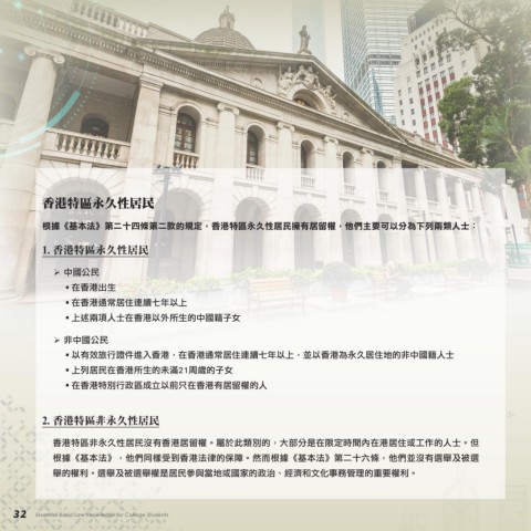 根據《基本法》第二十四條第二款的規定,香港特區永久性居民擁有居留權,他們主要可以分為下列兩類人士: