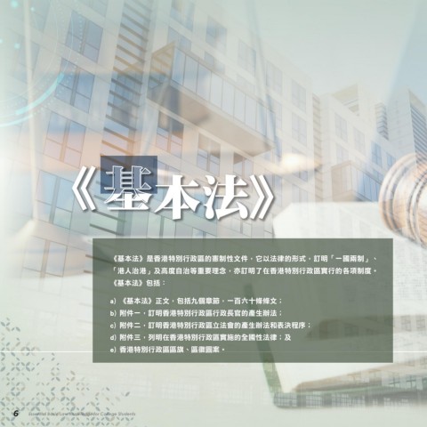 《基本法》是香港特別行政區的憲制性文件,它以法律的形式,訂明「一國兩制」、