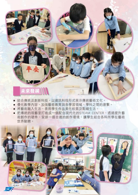 未來發展 ● 結合傳統及創新科技,以資訊科技形式展示傳統藝術文化。 ● 優化教學內容,加強藝術教育與各學習領域、學科之間的連繫。 ● 將藝術融入生活,善用學生作品美化校園及點綴生活。 ● 把傳統的視藝室打造成一個配合現代化的STEAM CENTER,透過提升藝 術創作的硬件,安排一個合適的創作環境,讓學生結合各科所學在藝術 世界馳騁。 34 34