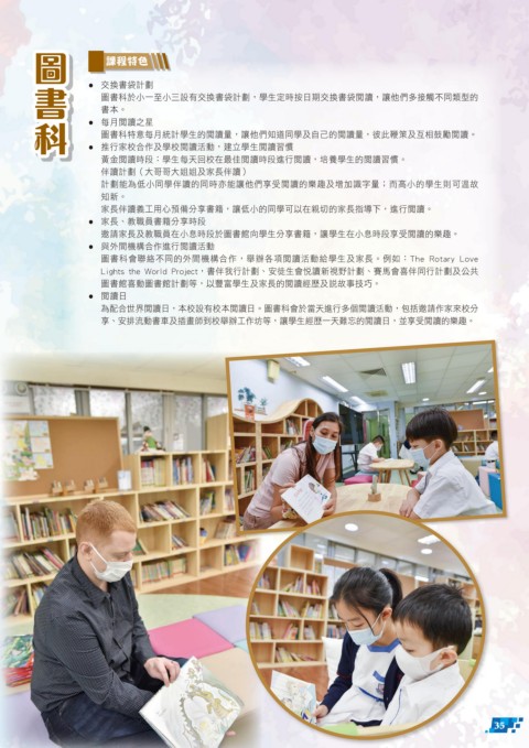 圖書科會聯絡不同的外間機構合作,舉辦各項閱讀活動給學生及家長。例如:The Rotary Love