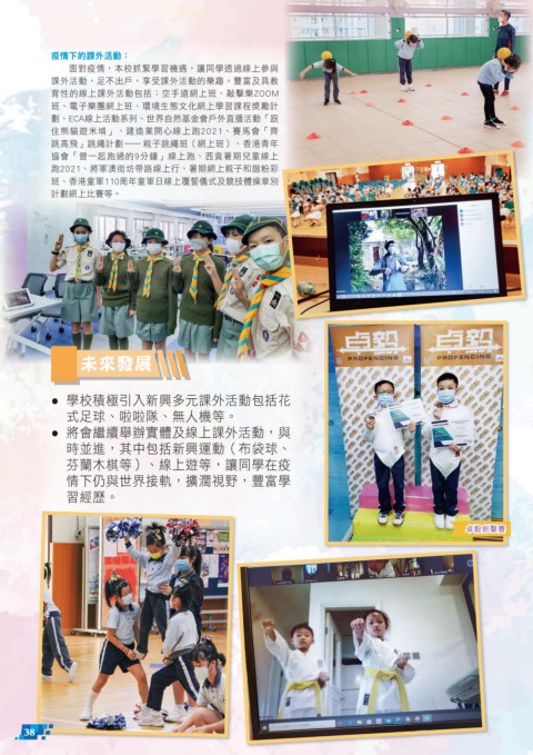 育性的線上課外活動包括:空手道網上班、敲擊樂ZOOM