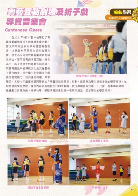 學習。本校今年繼續挑選同學參加「粵藝新苗查篤撐」計劃,這課程為學生提供多元的學習環境,並