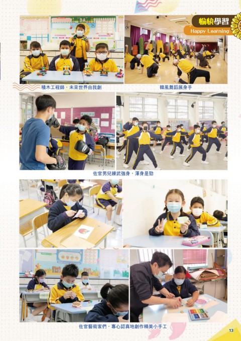 愉快學習 Happy Learning 積木工程師,未來世界由我創 韓風舞蹈展身手 佐官男兒練武強身,渾身是勁 佐官藝術家們,專心認真地創作精美小手工 13