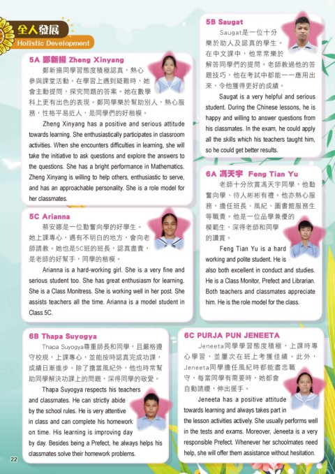 Holistic Development 樂於助人及認真的學生。