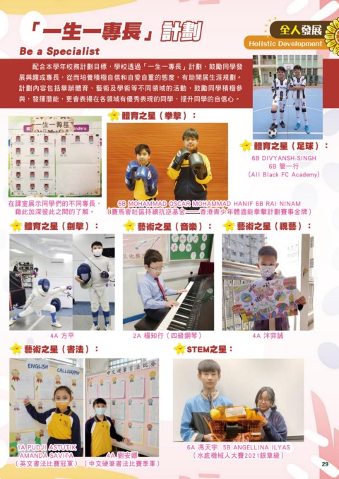 配合本學年校務計劃目標,學校透過「一生一專長」計劃,鼓勵同學發