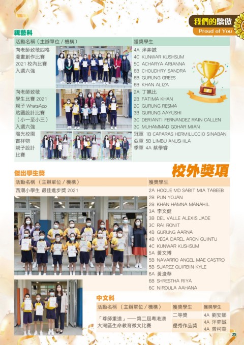 活動名稱 (主辦單位∕機構) 獲獎學生 獲獎學生
