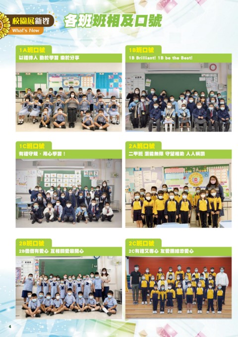 校園展新姿 各班 班相及口號 What's New 1A班口號 1B班口號 以禮待人 勤於學習 樂於分享 1B Brilliant! 1B be the Best! 1C班口號 2A班口號 有禮守規,用心學習! 二甲班 潛能無限 守望相助 人人稱讚 2B班口號 2C班口號 2B個個有愛心 互相關愛最開心 2C有禮又專心 友愛團結添愛心 4