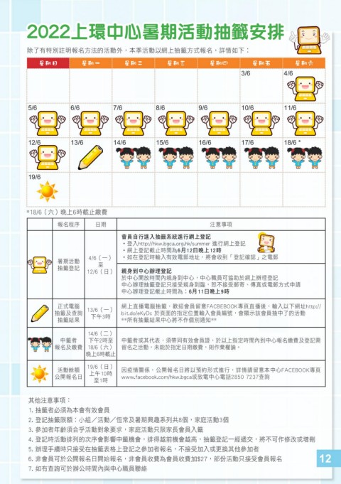2. 登記抽籤限額︰小組/活動/恆常及暑期興趣系列共8個,家庭活動3個