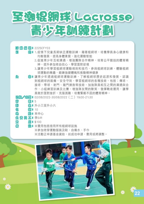 ** 以上所有活動如因惡劣天氣影響而需要取消,或 貴子女因私人/學校活動而需要請假,本中心將不會安排補堂及退款 ** 22