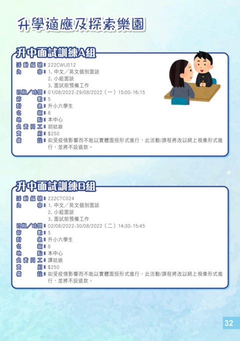 日期/時間: 02/08/2022-30/08/2022(二)14:30-15:45