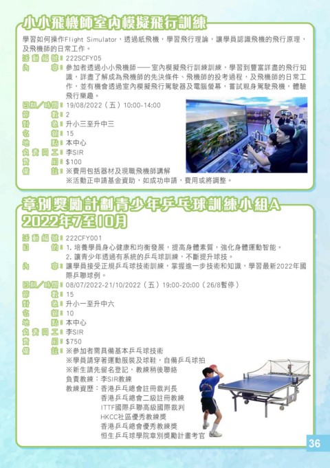 ※學員請穿著運動服裝及球鞋,自備乒乓球拍
