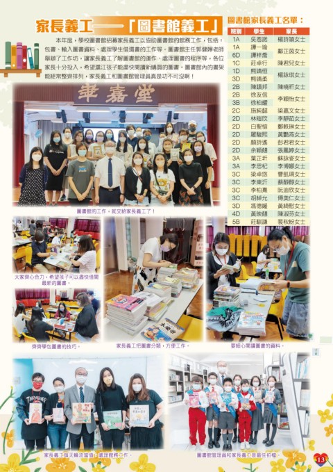 家長義工—「圖書館義工」 圖書館家長義工名單︰