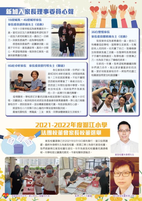 心。希望疫情過後,能與各位家長一起 加各類家長義工活動,也發揮特長教授親