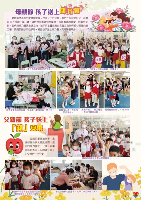 持。我們把康乃馨送上課室時,孩子用掌聲感激家長義工為他們悉心預備的康