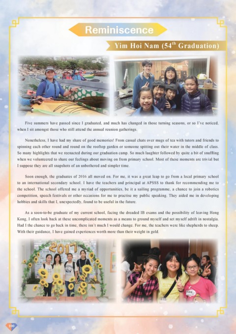 to an international secondary school. I have the teachers and principal at APSSS to thank for recommending me to