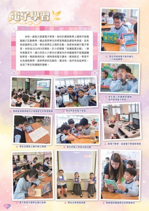本校一直致力發展電子學習,各科於課堂教學上運用平板電