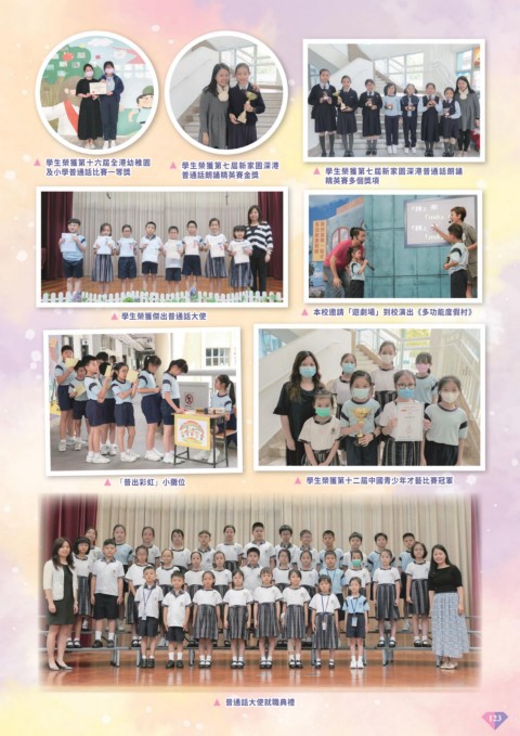 學生榮獲第十六屆全港幼稚園 學生榮獲第七屆新家園深港 及小學普通話比賽一等獎 普通話朗誦精英賽金獎 學生榮獲第七屆新家園深港普通話朗誦 精英賽多個獎項 本校邀請「遊劇場」到校演出《多功能度假村》 學生榮獲傑出普通話大使 「普出彩虹」小攤位 學生榮獲第十二屆中國青少年才藝比賽冠軍 普通話大使就職典禮 123