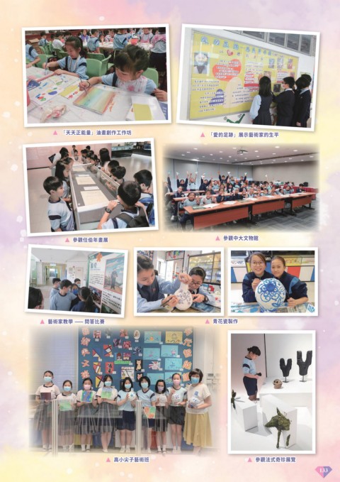 「天天正能量」油畫創作工作坊 「愛的足跡」展示藝術家的生平 參觀中大文物館 參觀任伯年畫展 藝術家教學-問答比賽 青花瓷製作 高小尖子藝術班 參觀法式奇珍展覽 133