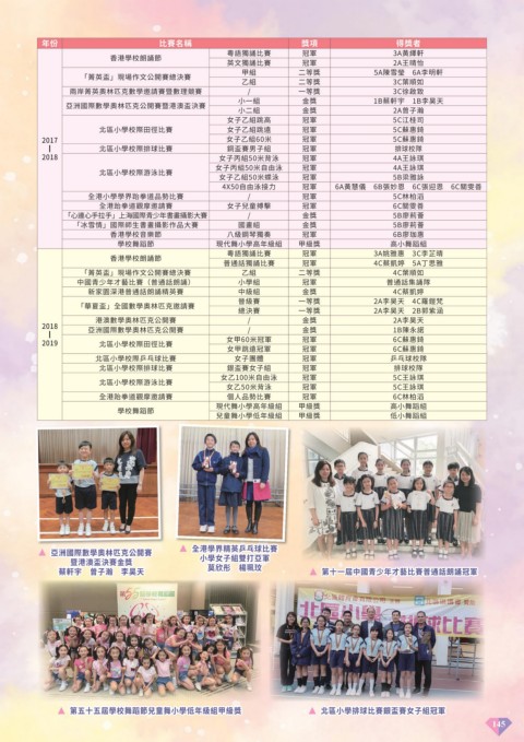 第五十五屆學校舞蹈節兒童舞小學低年級組甲級獎 北區小學排球比賽銀盃賽女子組冠軍