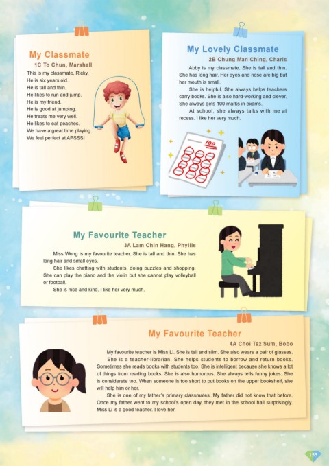 Miss Wong is my favourite teacher. She is tall and thin. She has