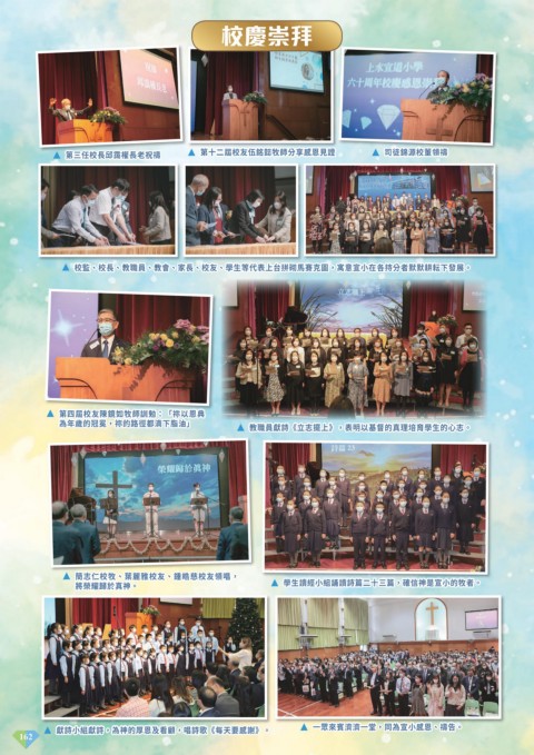 校監、校長、教職員、教會、家長、校友、學生等代表上台拼砌馬賽克圖,寓意宣小在各持分者默默耕耘下發展。