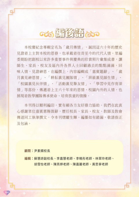 見證着上主對本校的恩眷,也承載着往昔至今的代代人情。眾編