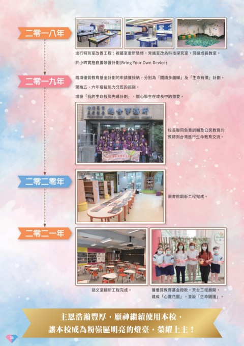 語文室翻新工程完成。 獲優質教育基金撥款,天台工程展開,