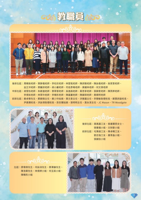 中排左起:胡雪怡老師、朱穎潼老師、鄧翠蓉老師、吳逸薇老師、黃思寧老師、張靜雯老師、陳燕婷老師、