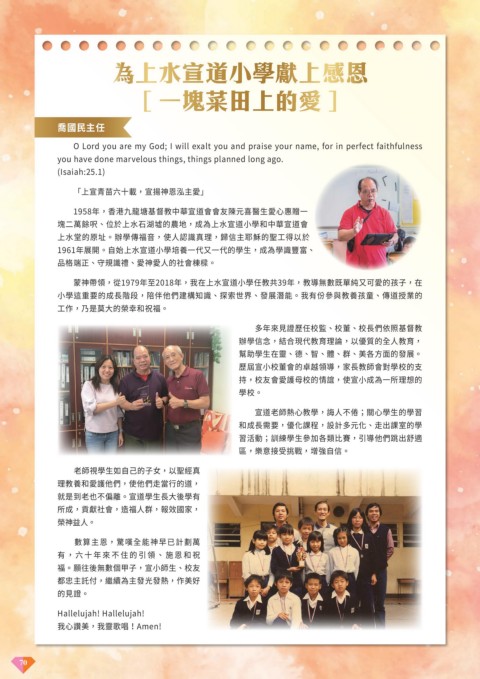 蒙神帶領,從1979年至2018年,我在上水宣道小學任教共39年,教導無數既單純又可愛的孩子,在