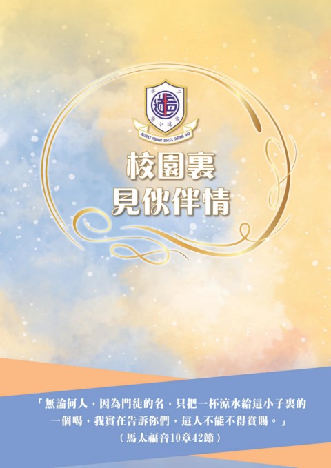 校園裏 見伙伴情 「無論何人,因為門徒的名,只把一杯涼水給這小子裏的 一個喝,我實在告訴你們,這人不能不得賞賜。」 (馬太福音10章42節)