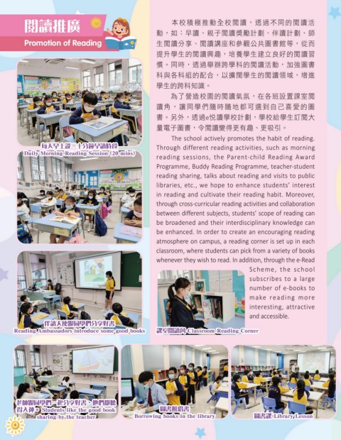 Promotion of Reading                         生閱讀分享、閱讀講座和參觀公共圖書館等,從而