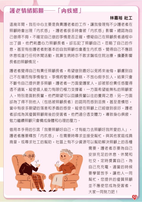 息,甚至有些護老者對基本的自我照顧也會產生內疚感,覺得自己不應該