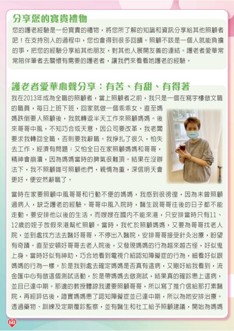 的事,把您的經驗分享給其他朋友,對其他人展開友善的連結。護老者愛華常