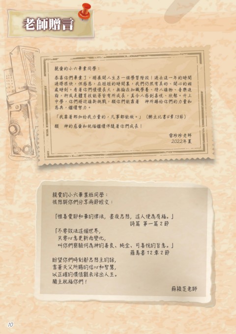 中學,你們將迎接新挑戰,願你們能靠著 神所賜給你們的力量和