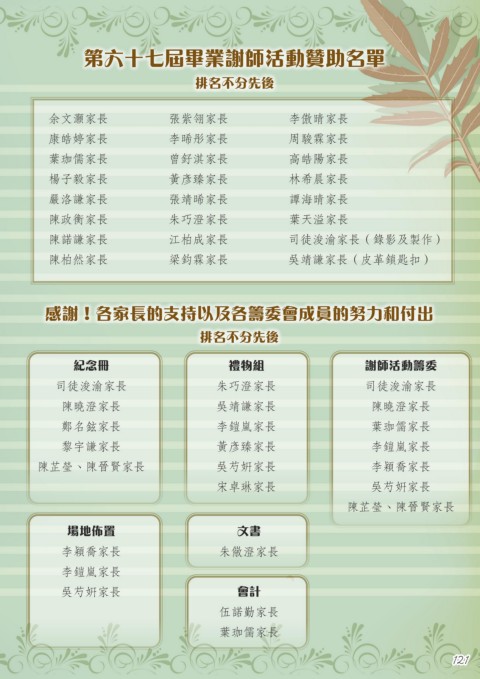 第六十七屆畢業謝師活動贊助名單