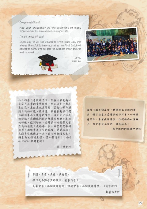 的回憶。臨別時刻,老師衷心地祝願大家 大,在中學發光發熱,照亮他人。