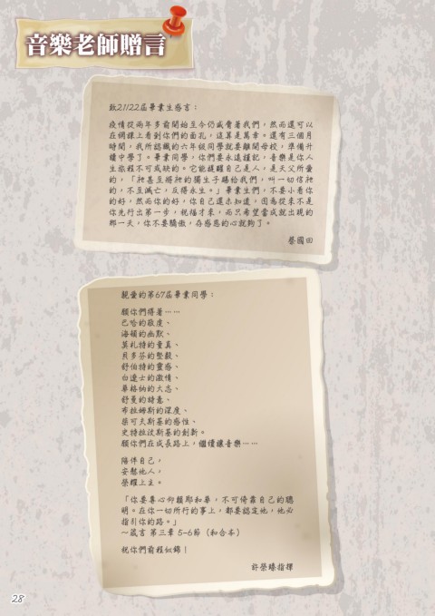 讀中學了。畢業同學,你們要永遠謹記,音樂是你人