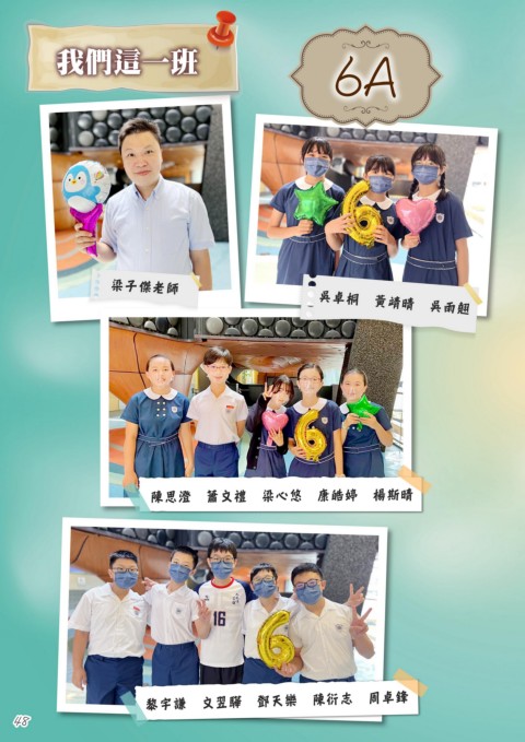 我們這一班 6A 梁子傑老師 吳卓桐 黃靖晴 吳雨翹 陳思澄 蕭文禮 梁心悠 康皓婷 楊斯晴 黎宇謙 文翌驊 鄧天樂 陳衍志 周卓鋒 48 48