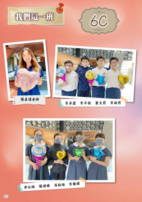 紀念冊留言 6C 我們這一班 6C 張嘉瑗老師 李卓霖 李子桓 蕭文熙 李柏熙 勞以琳 張靖晞 馮詠璇 李傲晴 80 80